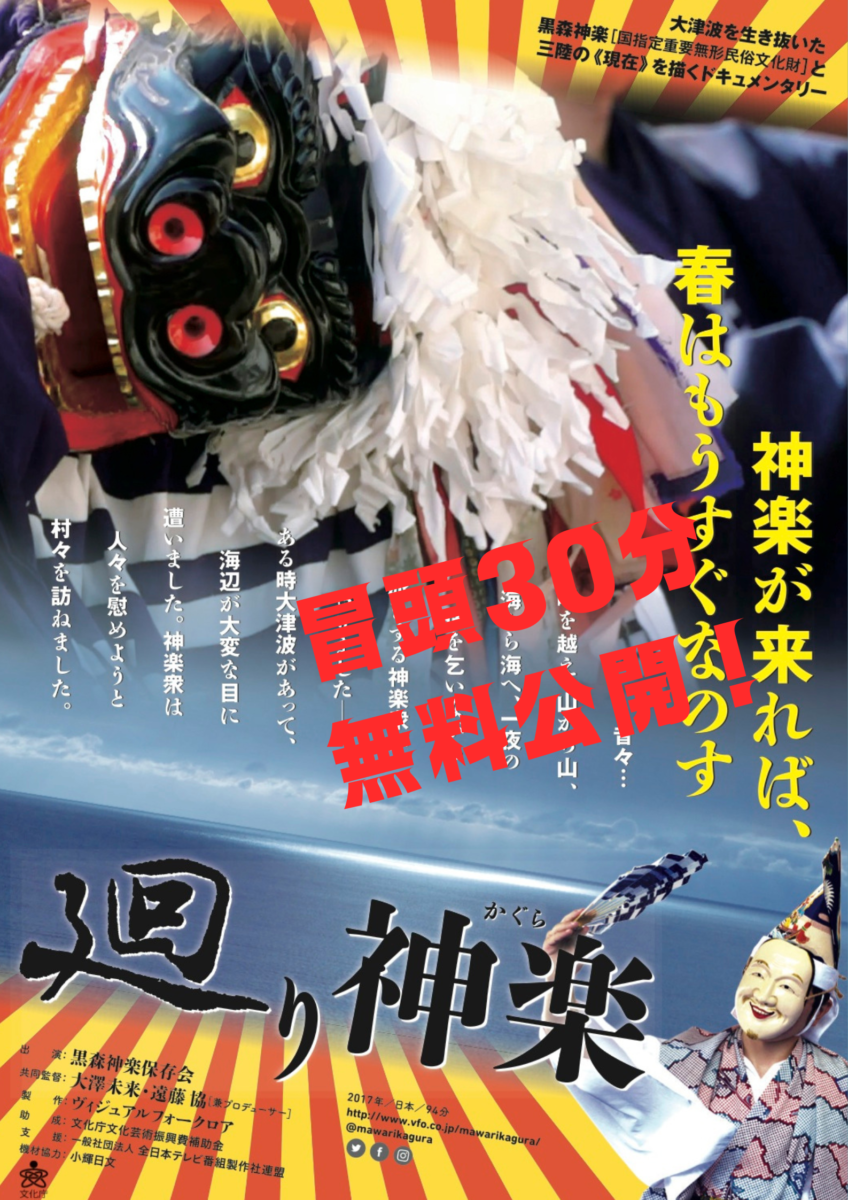 津波に襲われた沿岸部で、人々を元気づけ、亡くなった方々の霊を慰めた民俗芸能を取り上げた『廻り神楽』の冒頭3・・・レンタル価格:無料 円【キャスト】